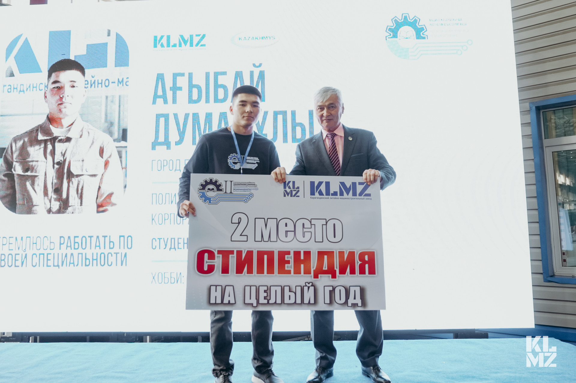 Второе место и именную стипендию занял Агыбай Думанулы из Политехнического колледжа корпорации "Казахмыс". Он отметил важность выбора профессии токаря и желание развиваться.