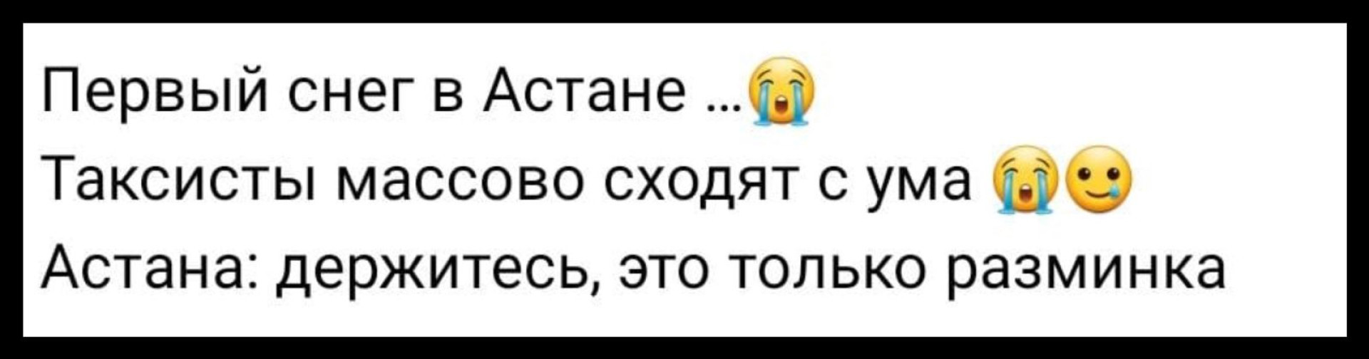 В Астане тоже сегодня заметили первый снег. Правда, не такой интенсивный, как в Костанае, однако и он повлиял на работу общественного транспорта и на стал причиной пробок.