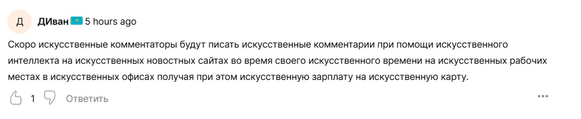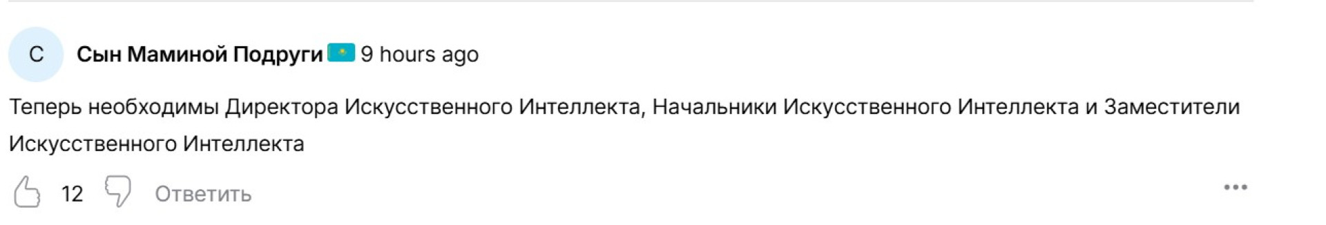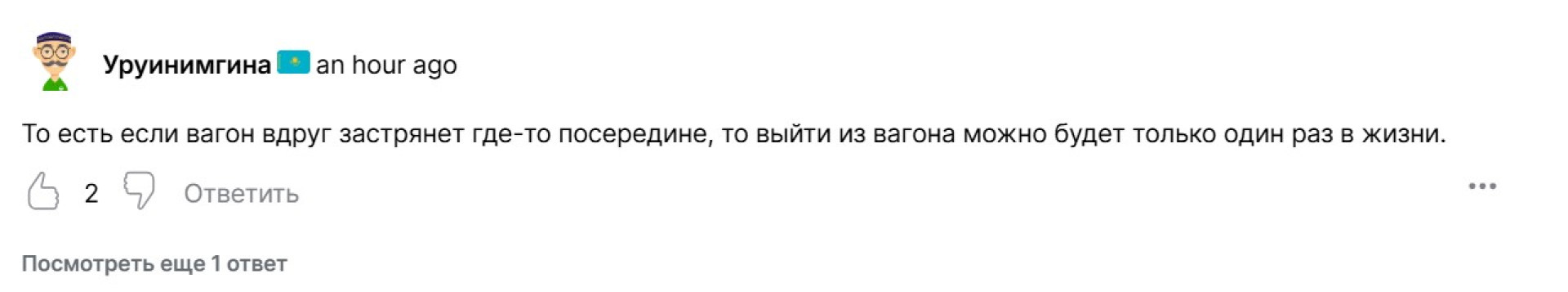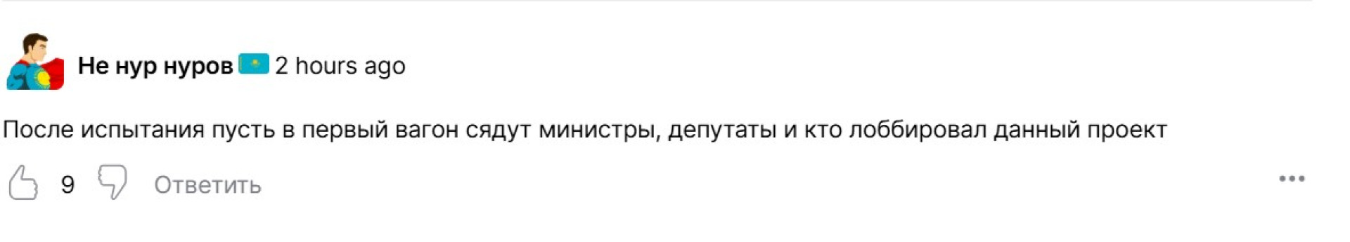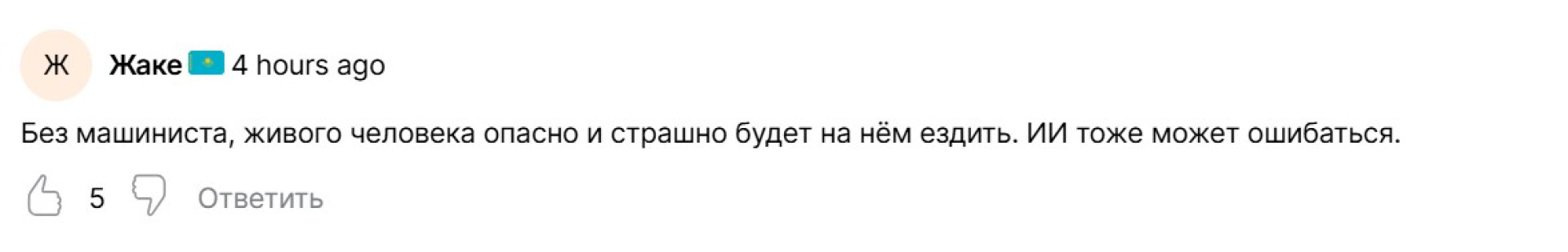 Некоторые из читателей восприняли новость с иронией, другие - с недоверием. Вспомнили и о том, что поезда у LRT будут беспилотными, и отметили, что "ИИ тоже может ошибаться". Многие пользователи заметили, что LRT строили долго и ещё немалое количество времени понадобится на то, чтобы его протестировать. Один из пользователей посоветовал казахстанским чиновникам первыми прокатиться на новом виде транспорта.