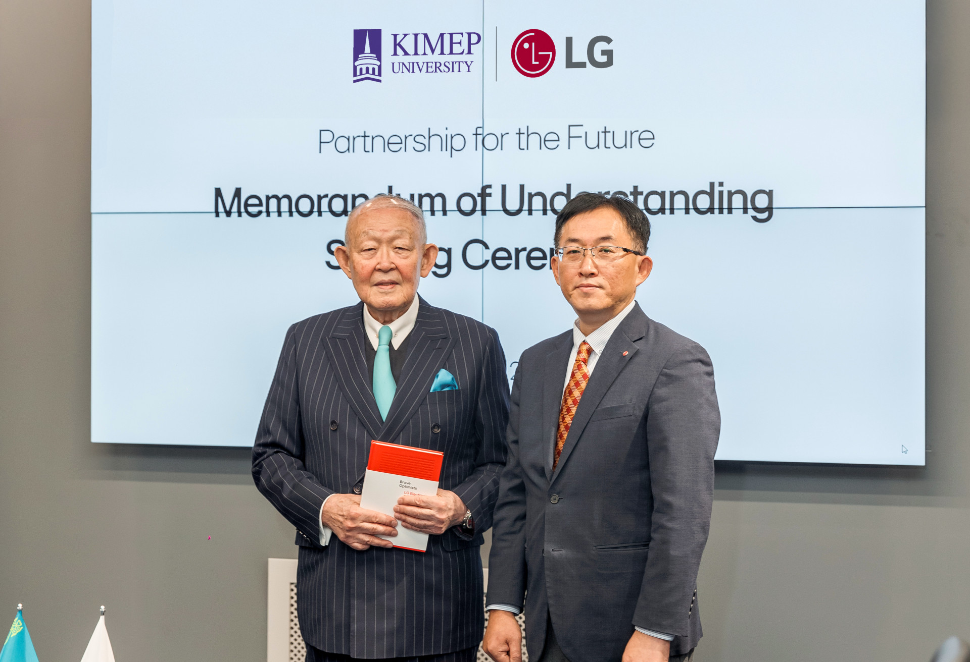 Компания LG Electronics Almaty Kazakhstan и Университет КИМЭП сделали важный шаг к долговременному сотрудничеству, подписав меморандум о партнерстве. Церемония прошла с участием ключевых фигур: президента и основателя Университета КИМЭП доктора Чан Ян Бэнга и президента LG Electronics Almaty Kazakhstan господина Ким Хакхёна (Hak Hyun Kim).