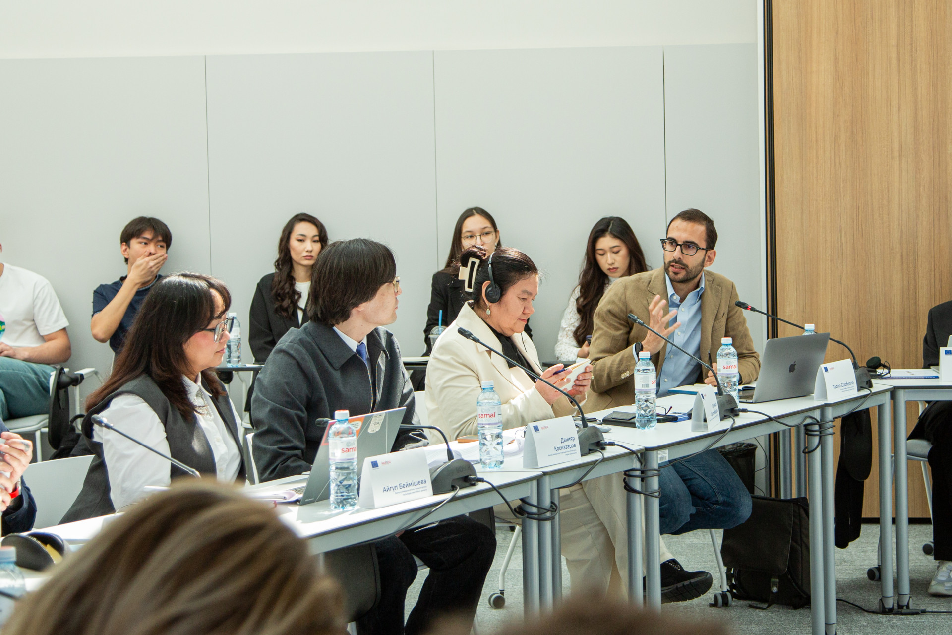 Участники дискуссии в ходе круглого стола Fact-Checking Day 2026 в Университете Нархоз. Фото: пресс-служба Университета Нархоз