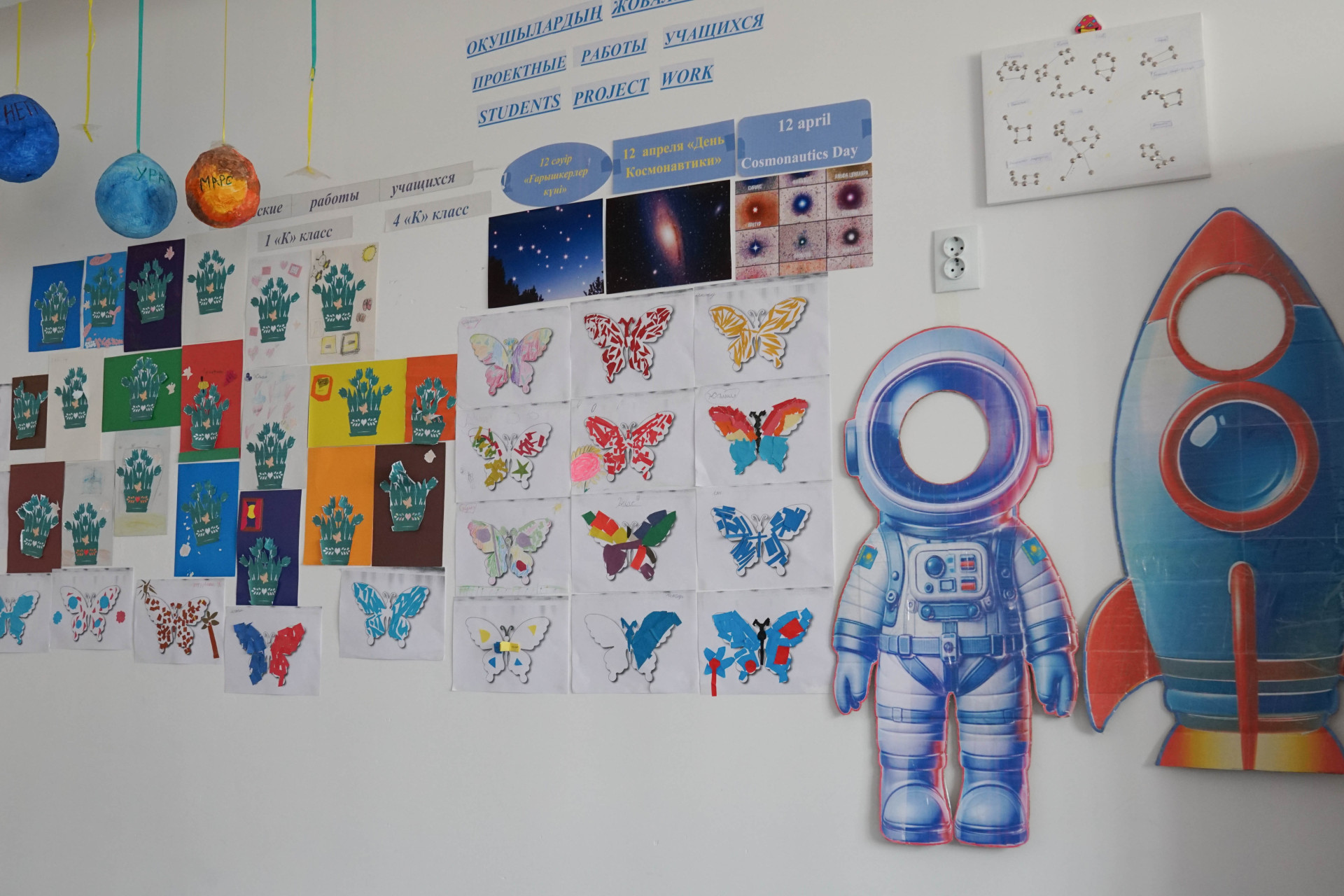 В школе обучают казахскому, русскому, английскому и китайскому языкам, а классы оформлены в стиле стран, языки которых изучают дети.