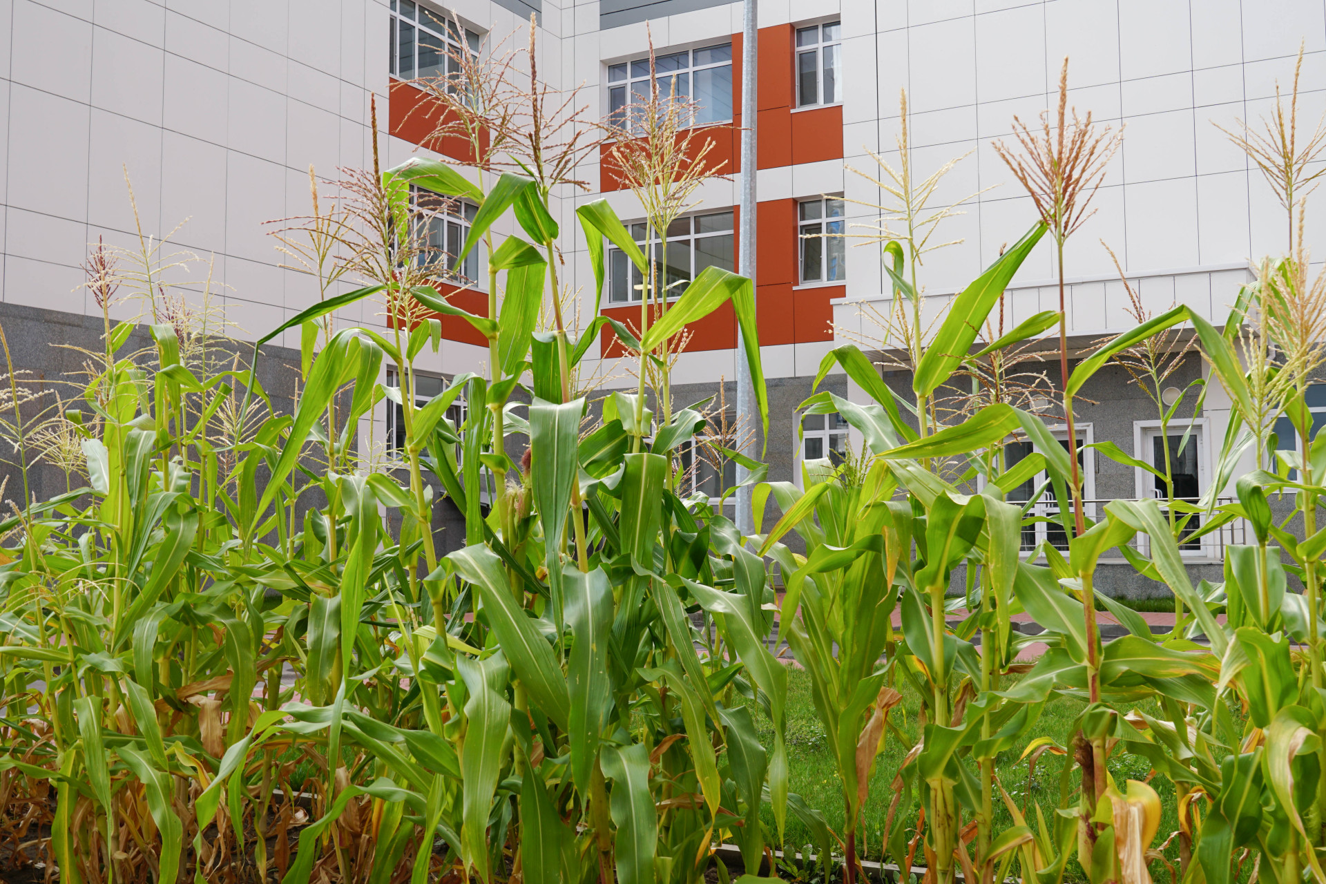 У главного входа встречают живые цветы в горшках, создающие уютную атмосферу.