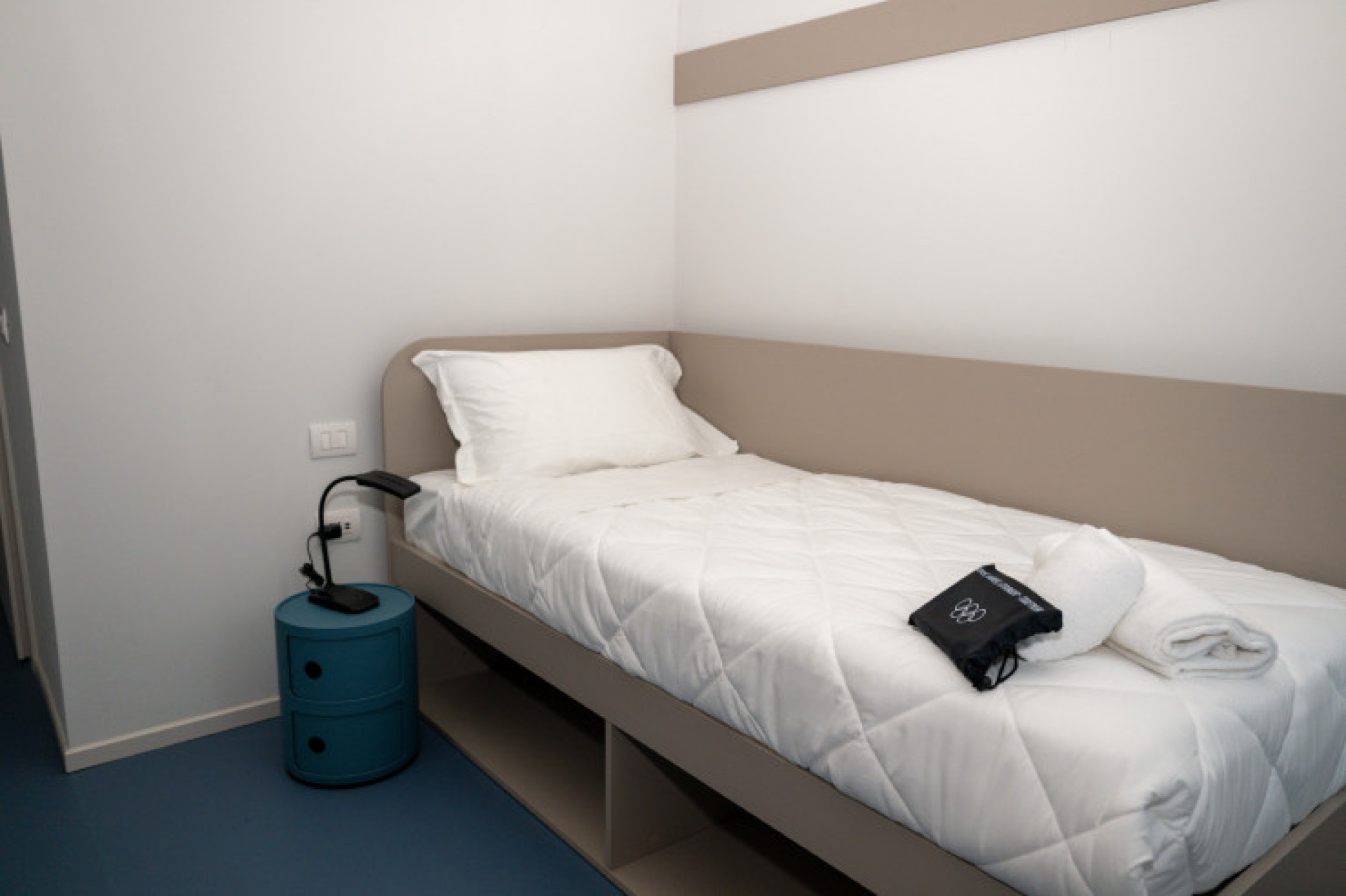 Обстановка для спортсменов выполнена в минималистичном стиле. В комнатах есть всё необходимое для отдыха и восстановления, с акцентом на функциональность, а не на комфорт гостиничного уровня.