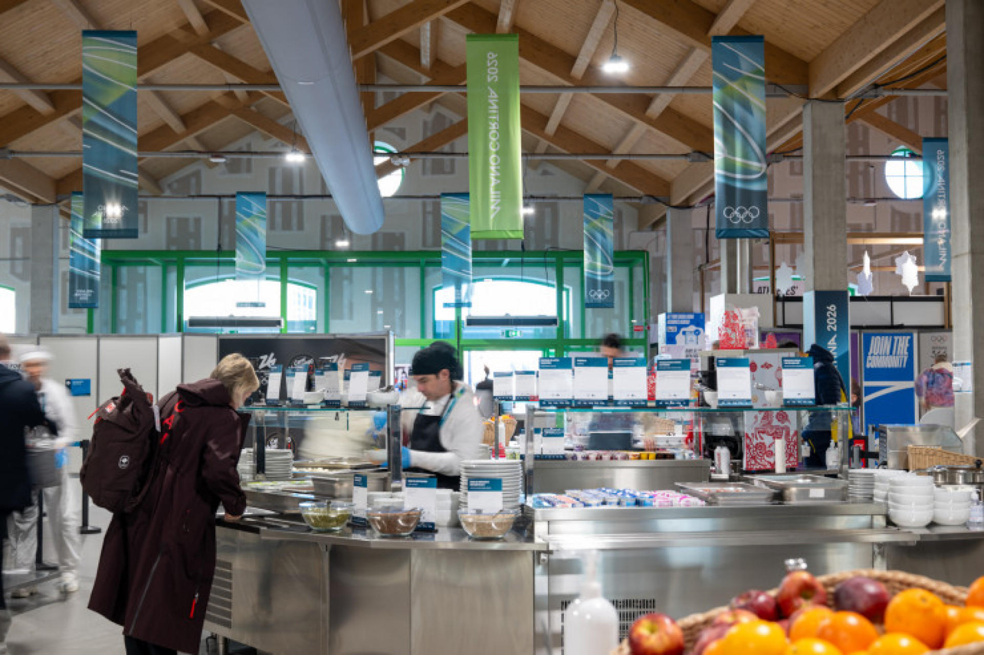 Организаторы уделили особое внимание питанию. Столовая олимпийской деревни находится в просторном помещении, где спортсменам доступен широкий выбор блюд, включая меню с учётом индивидуальных особенностей: безглютеновое, безлактозное и диетическое питание.
