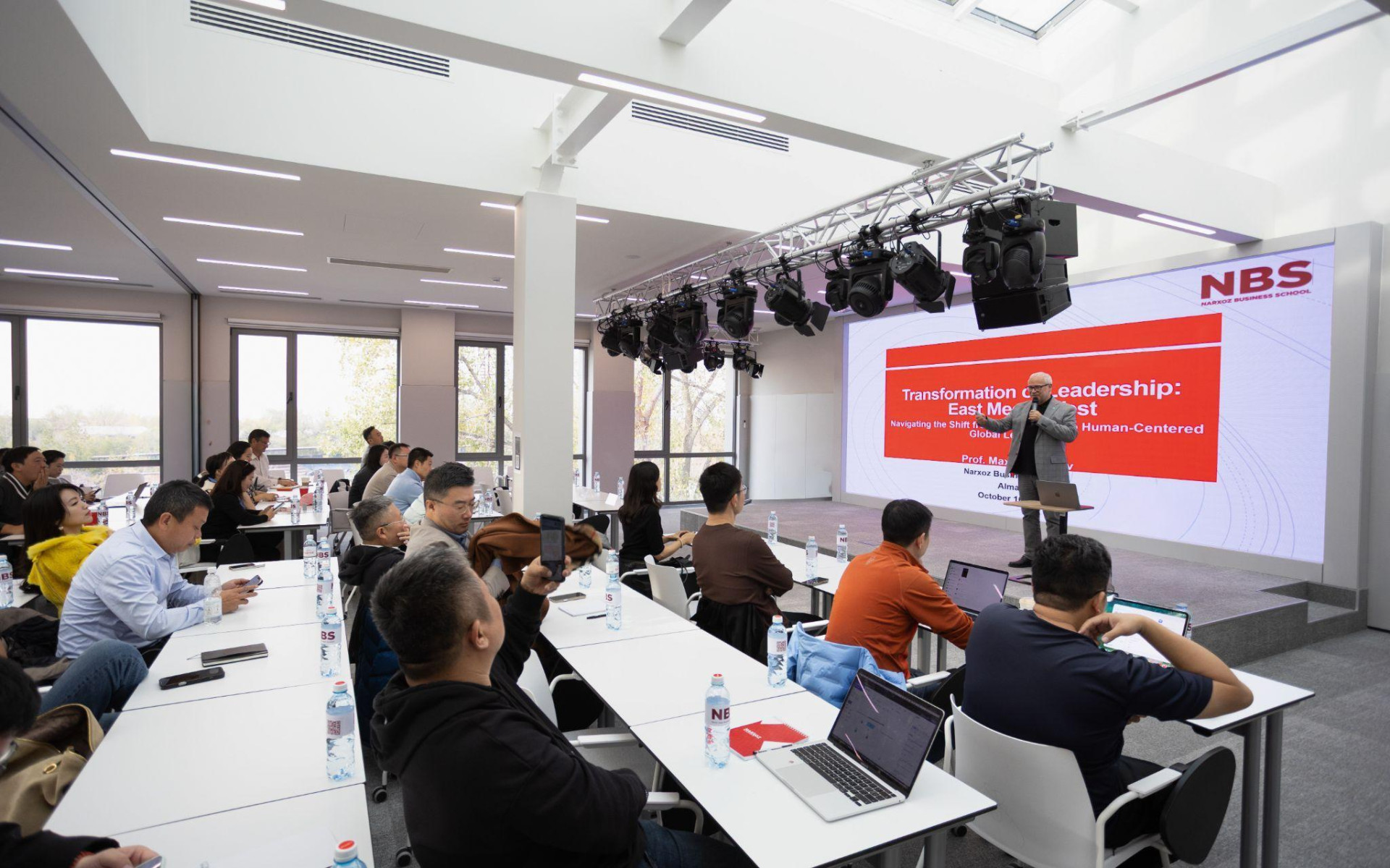 Академическая часть программы включала выступления профессоров Narxoz Business School, таких как Максат Кабашев (MBA, MIT) и Максим Киселев (PhD, Yale University). Они обсудили новую формирующуюся парадигму лидерства и представили подходы системной динамики и инновационного прогнозирования, подчеркивая роль Казахстана как растущего инвестиционного и стратегического центра региона.