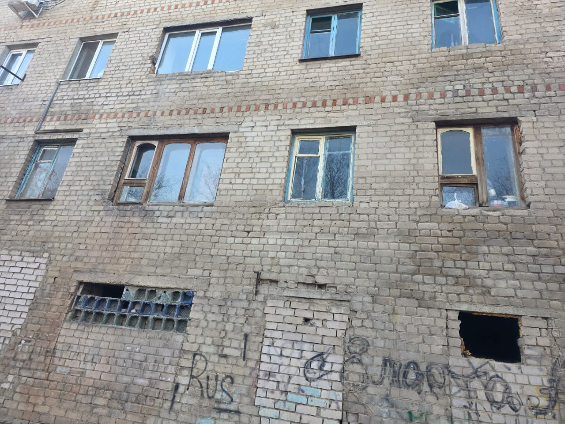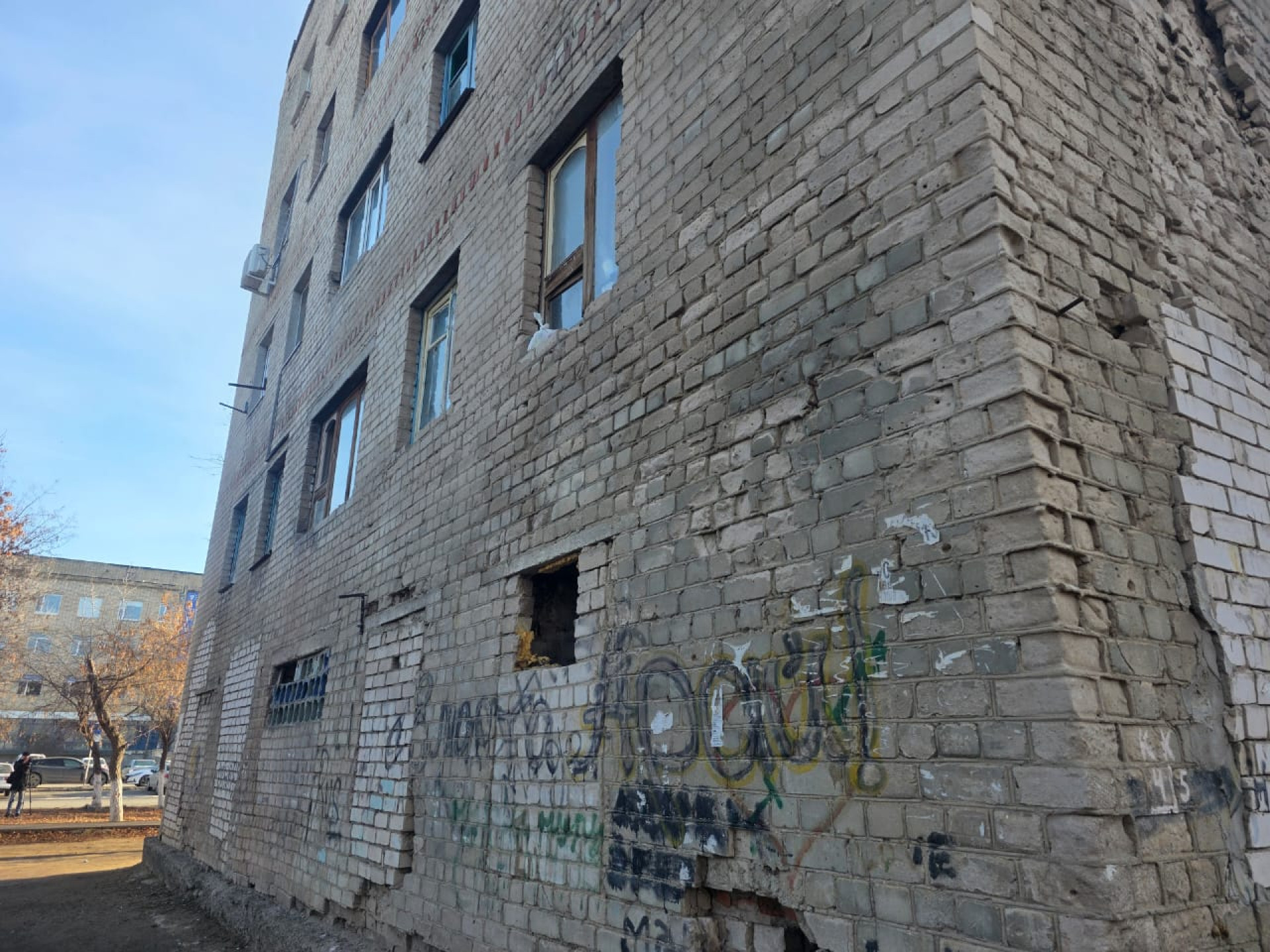 Общежитие расположено всего в нескольких кварталах от областного акимата, но близость к местной власти не решает проблемы. Фасад здания осыпается, а кирпичи периодически падают с облицовки.