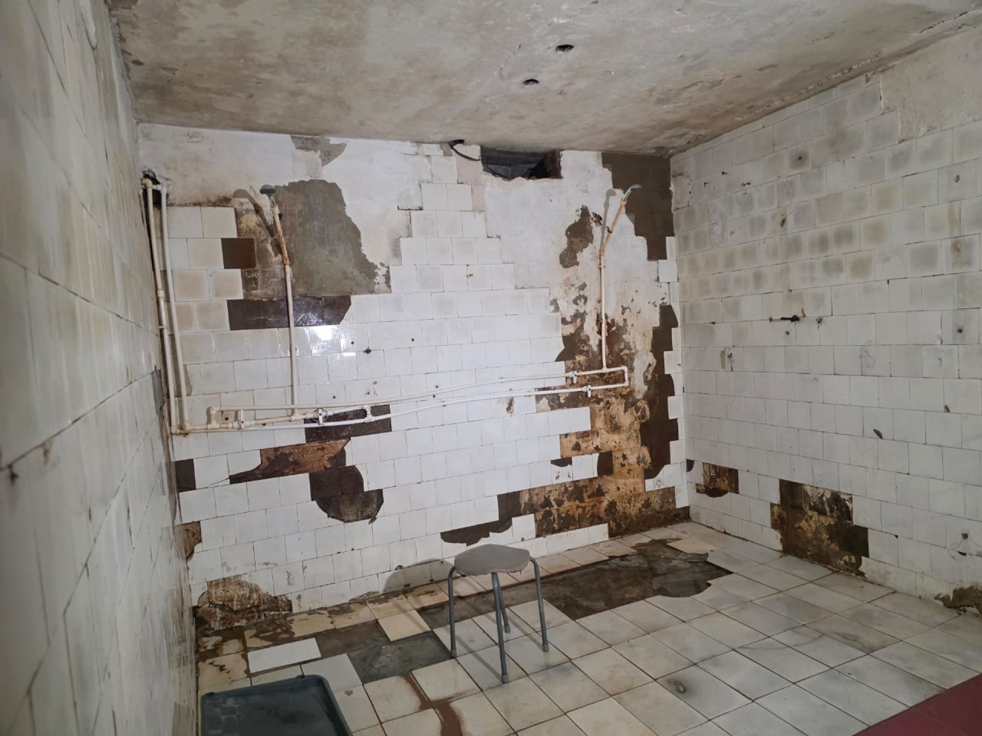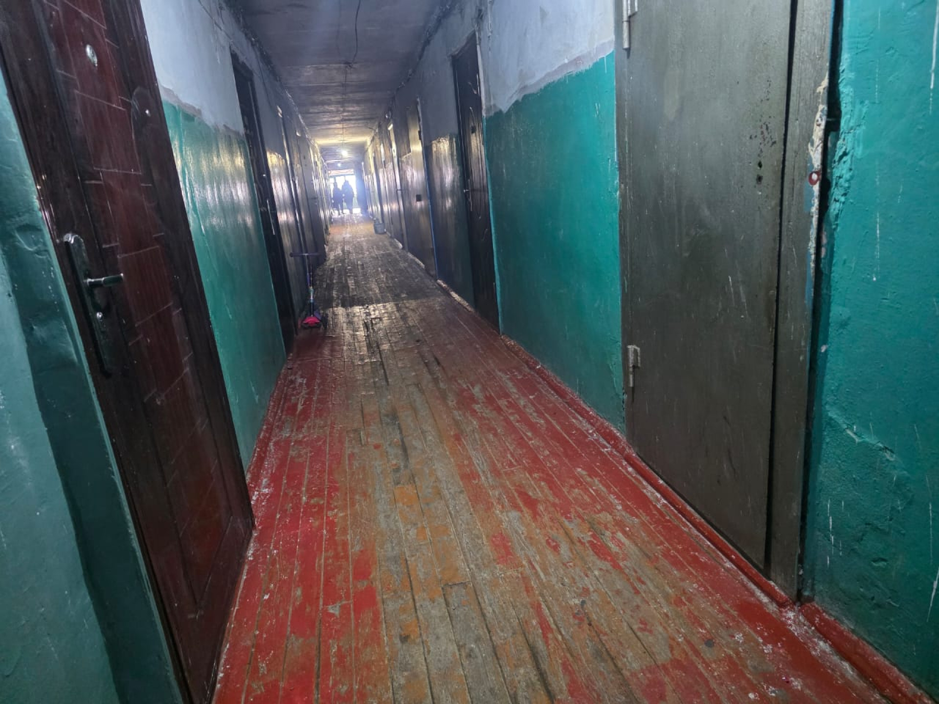 В подъездах имеются грибок, сырость и оголённые провода. В некоторых комнатах стены трескаются, а в пятиэтажном здании всего одна душевая для всех жильцов.