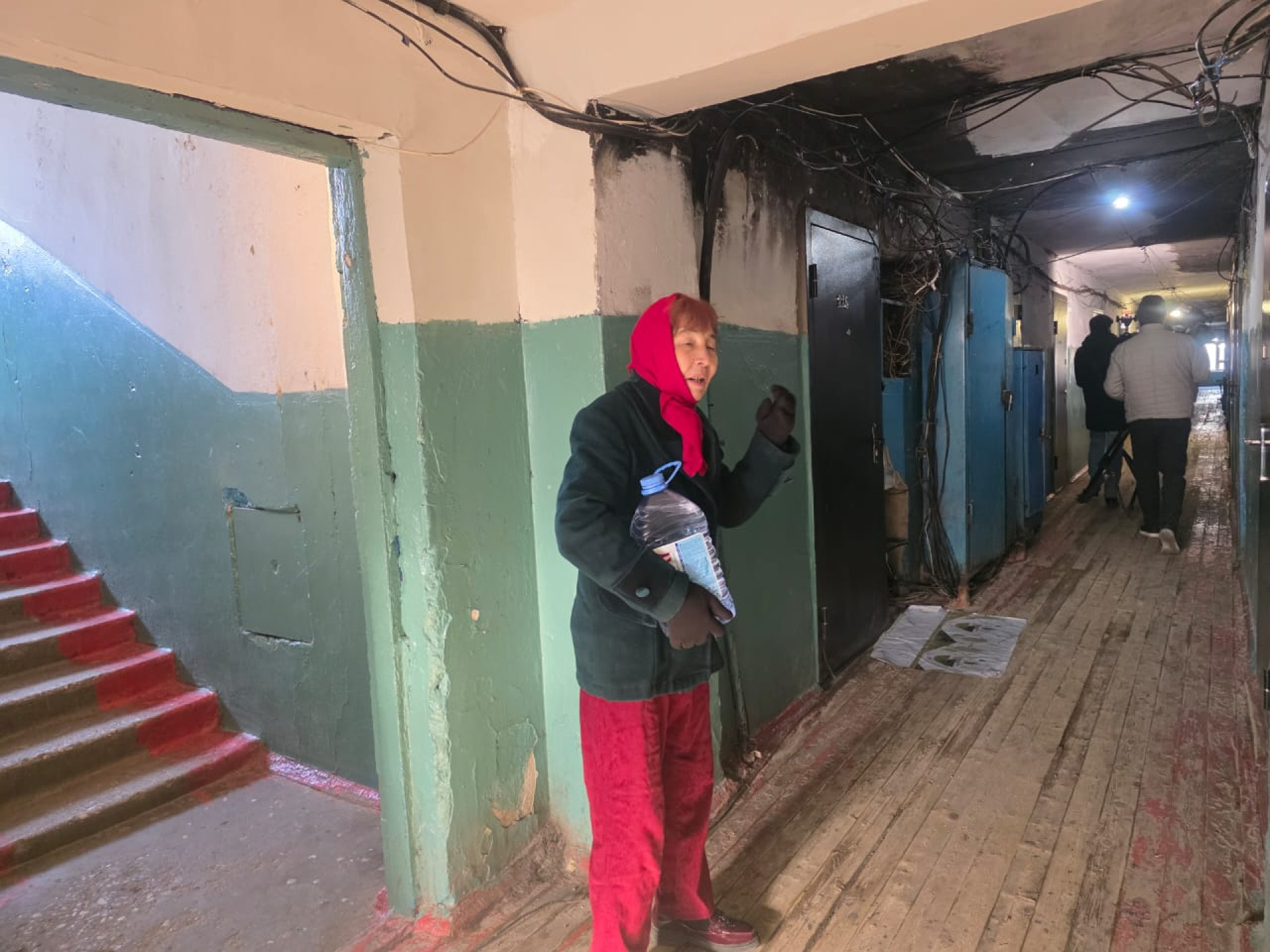 "За три года аким города не нашёл времени прийти и увидеть условия. Общежитие в аварийном состоянии: электрические провода свисают, стены разрушаются. Два года назад был пожар — реакции нет," — говорит представитель инициативной группы Галия Султанова.
